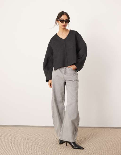 ASOS EDITION tailored wool mix boxy jumper with clean seam detail in charcoal