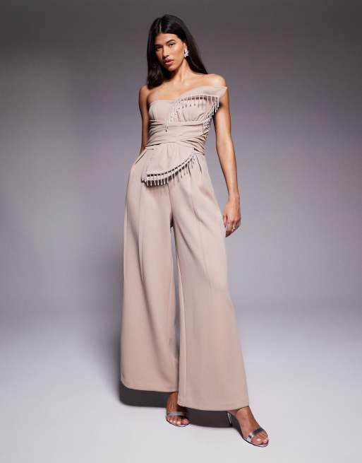 ASOS LUXE 3D petal jumpsuit with drop bead detail in stone