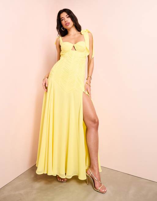 ASOS LUXE chiffon tie shoulder cut-out maxi dress in yellow
