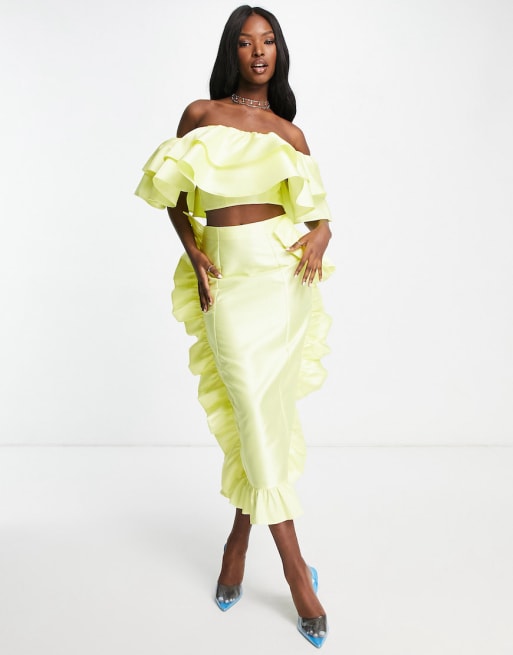 ASOS LUXE co-ord satin ruffle set in lemon