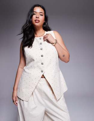 ASOS LUXE Curve hotfix emebllished linen-blend waistcoat in cream (Part of a set)