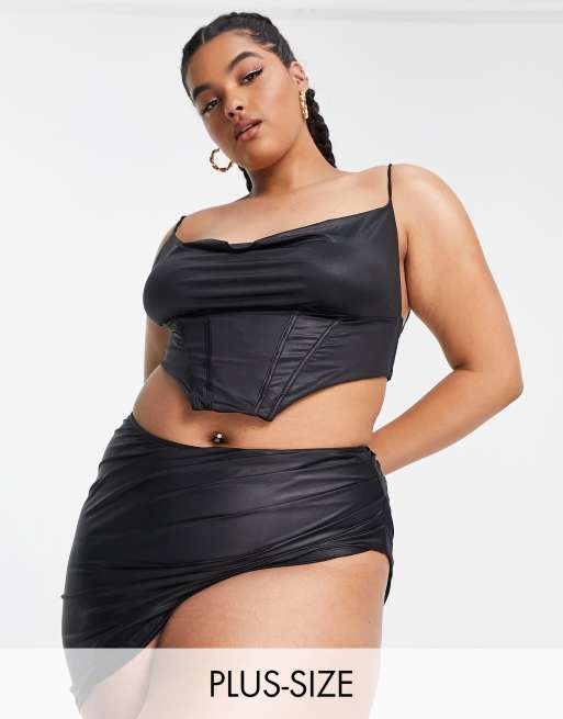 ASOS LUXE Curve satin wrap skirt bikini bottoms in black