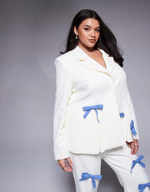 ASOS LUXE Curve tailored blazer with denim bows in cream (part of a set)