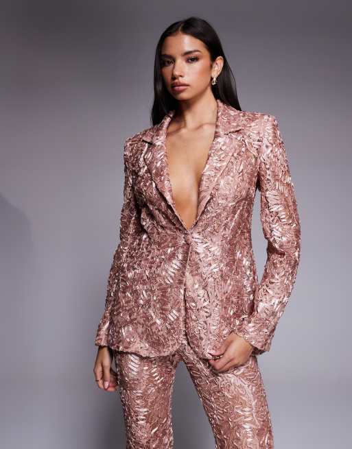 ASOS LUXE lace tailored blazer in blush (part of a set)