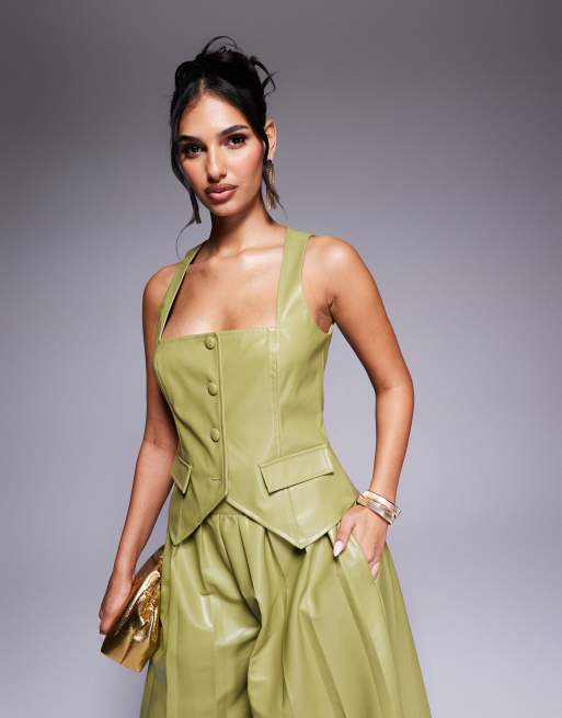 ASOS LUXE PU waistcoat in olive (part of a set)