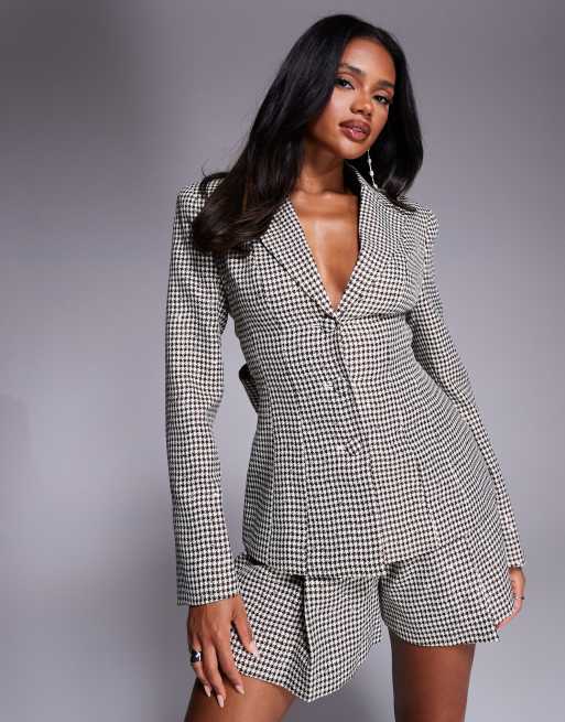 ASOS LUXE sequin jacquard blazer with bow back and flippy short set in chocolate