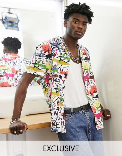 ASOS MADE IN KENYA revere shirt with pocket detail in animal illustration print