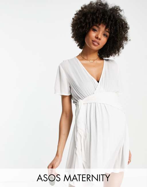 ASOS DESIGN Maternity crinkle tie front sheer beach cover up in white