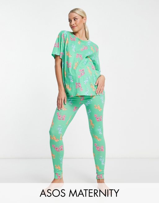 ASOS DESIGN Maternity dino & lobster oversized tee & leggings pyjama set in green