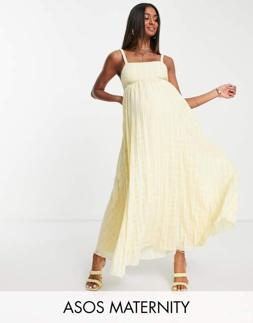 ASOS DESIGN Maternity elasticated pleated midi dress in pastel yellow