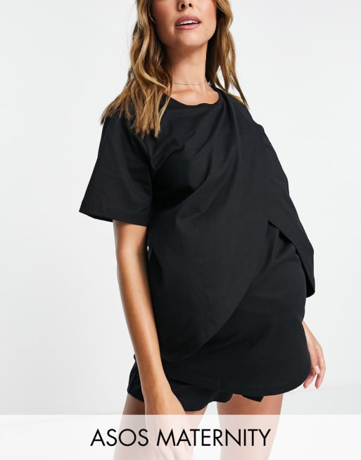 ASOS DESIGN Maternity mix & match organic cotton pyjama set in black