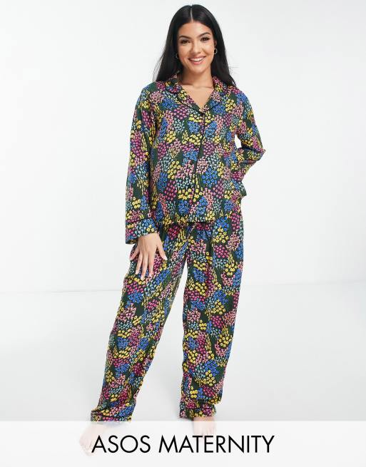 ASOS DESIGN Maternity modal ditsy floral shirt & pants pyjama set in black