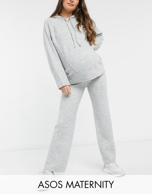 ASOS DESIGN Maternity oversized knitted hoodie and wide-legged pants in grey