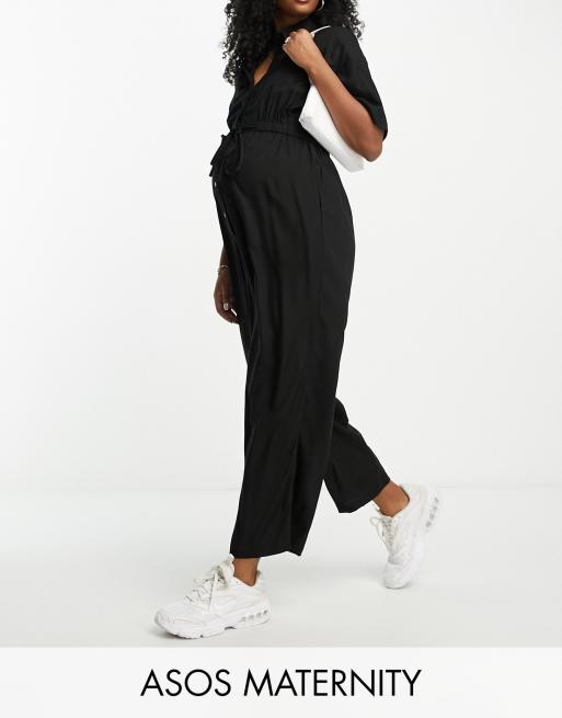 ASOS DESIGN Maternity oversized tie waist shirt jumpsuit in black