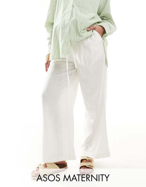 ASOS DESIGN Maternity pull on pants with linen look in white