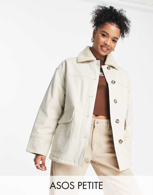 ASOS DESIGN Petite borg lined cotton jacket in stone