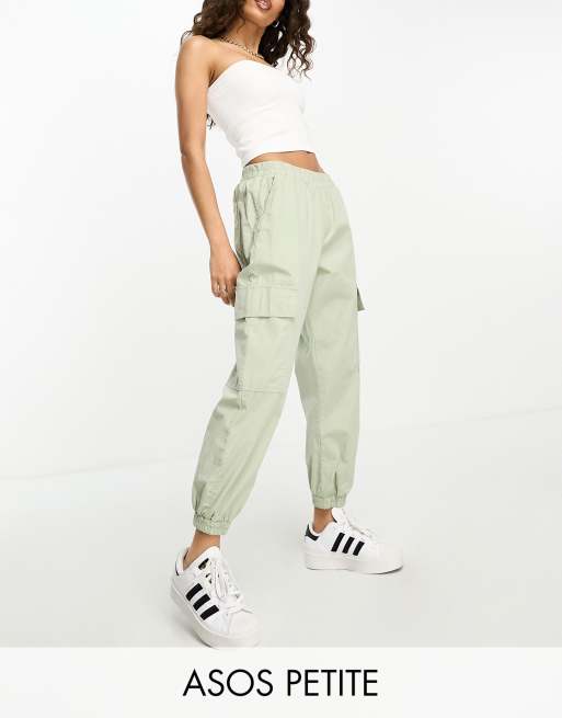 ASOS DESIGN Petite cargo pants with elasticated cuff in sage