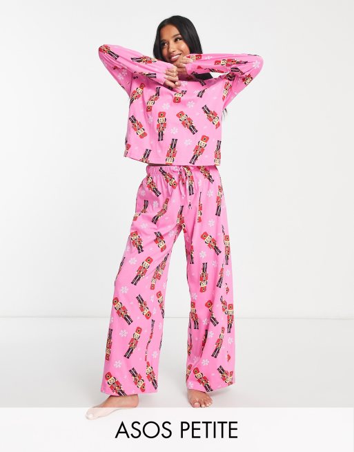 ASOS DESIGN Petite Christmas nutcracker long sleeve top & pants pyjama set in pink
