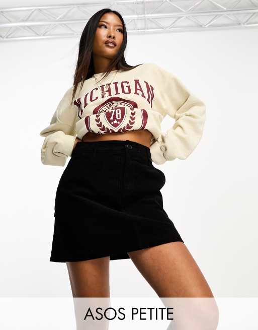 ASOS DESIGN Petite cord pocket a-line mini skirt in black