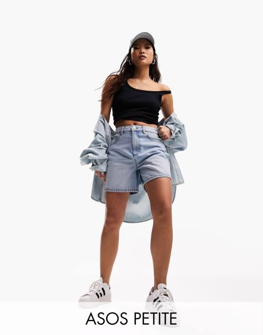 ASOS DESIGN Petite denim dad shorts in midwash blue