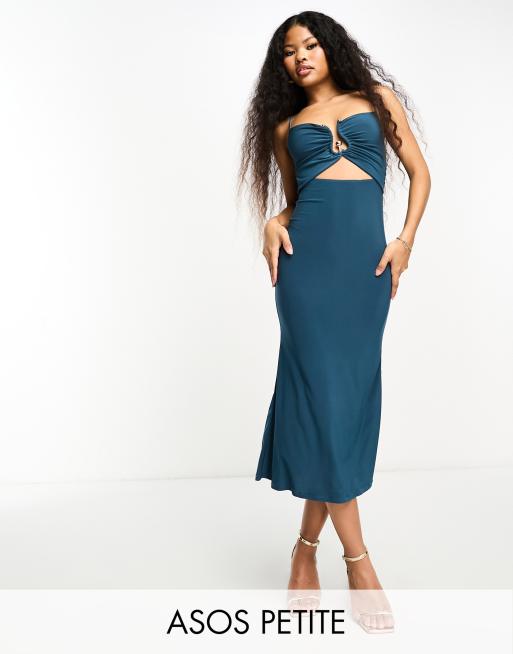 ASOS DESIGN Petite gold trim cut out cami midi dress in petrol blue