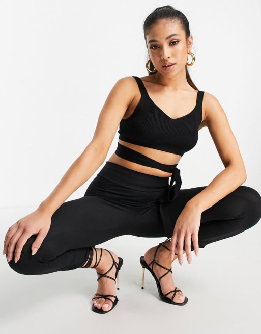 ASOS DESIGN Petite knitted shrug and bralet set with tie waist detail in black