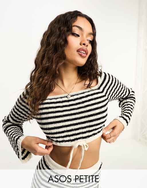 ASOS DESIGN Petite knitted wide neck crop jumper in stripe in black and white (part of a set)
