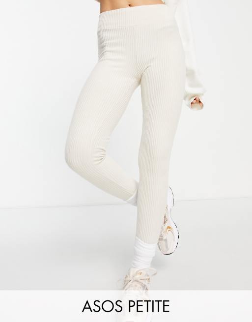 ASOS DESIGN Petite leggings with high waist in brushed rib in bone