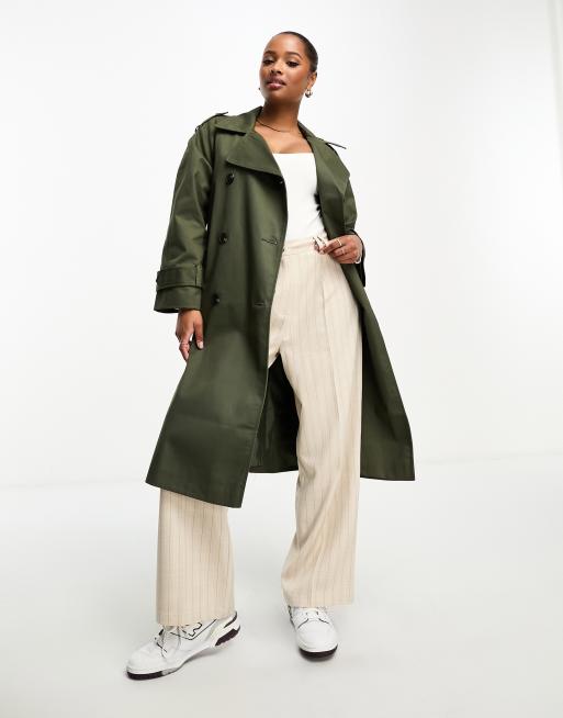 ASOS DESIGN Petite longline trench coat in dark khaki