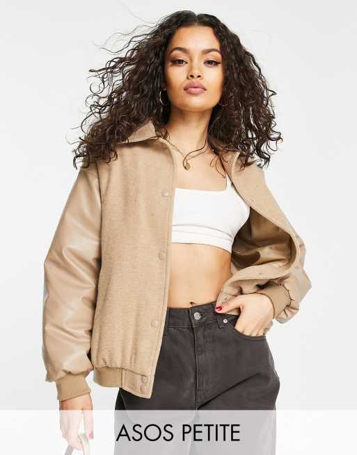 ASOS DESIGN Petite varsity bomber jacket in camel