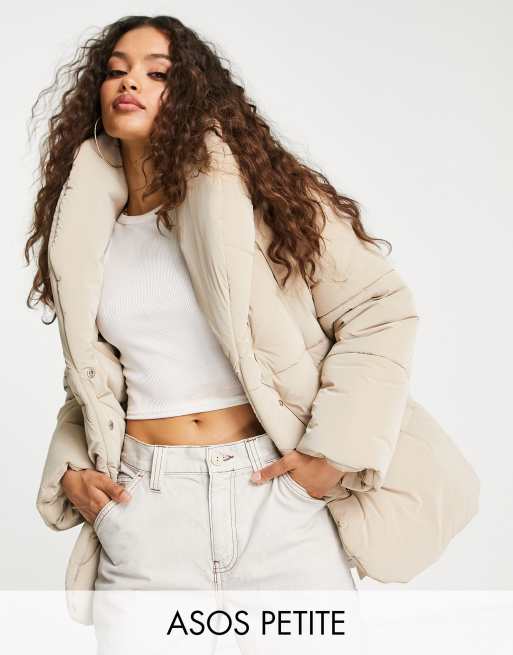 ASOS DESIGN Petite velour look belted puffer coat in mink