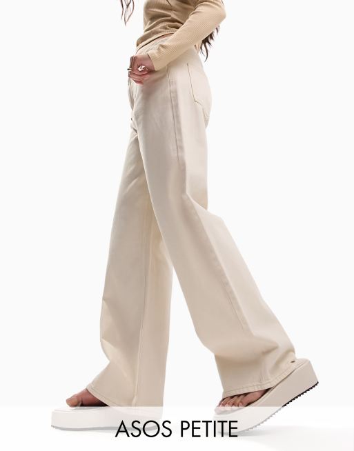 ASOS DESIGN Petite wide leg dad jeans in neutral
