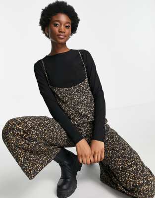 ASOS DESIGN skinny strap dungarees in dark ditsy with long sleeve t-shirt