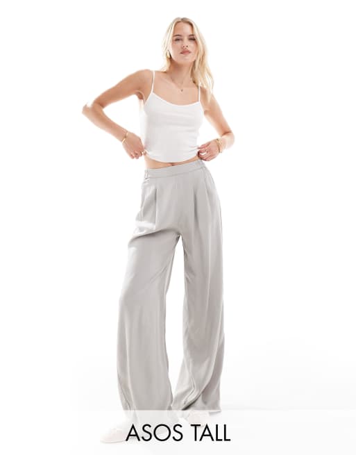 ASOS DESIGN Tall casual wide leg pull on pants in grey