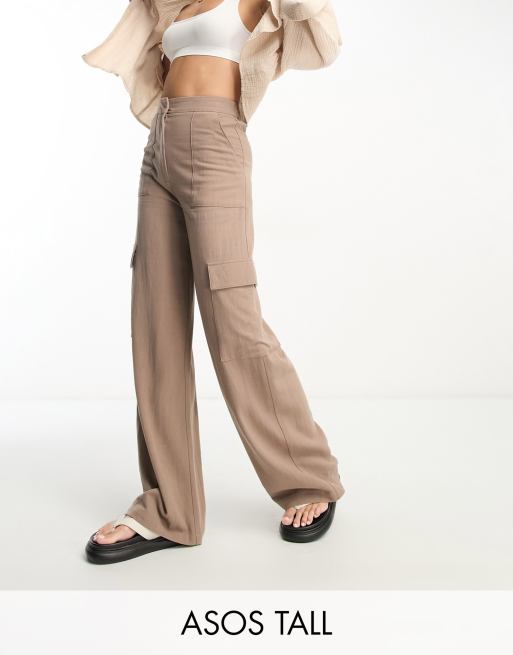 ASOS DESIGN Tall drapey cargo pants in brown