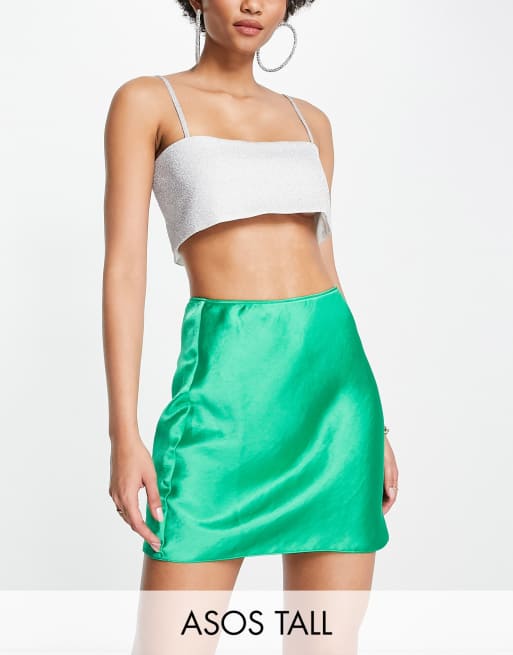 ASOS DESIGN Tall high shine satin mini slip skirt in pepper green