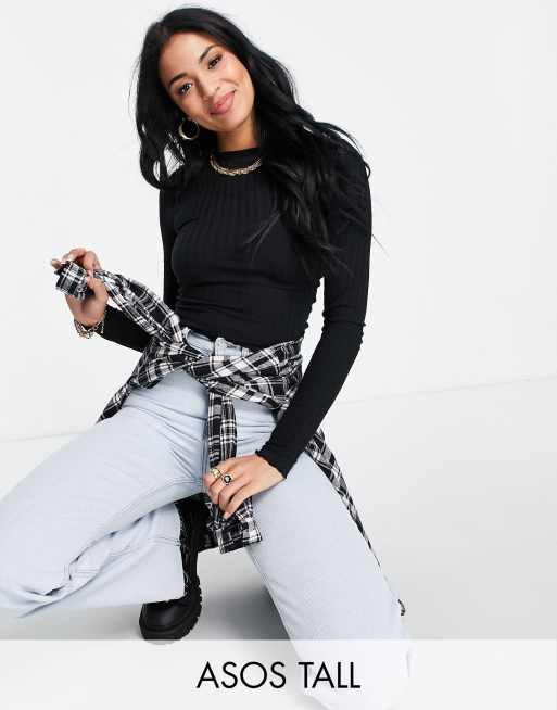 ASOS DESIGN Tall lettuce edge crop t-shirt in black