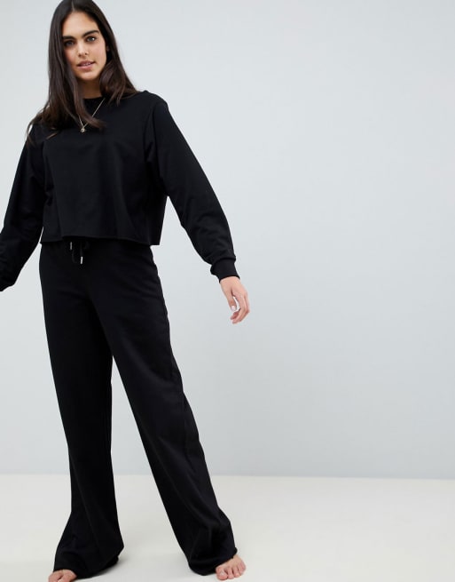 ASOS DESIGN Tall Lounge cross back open sweat top and wide leg palazzo pants