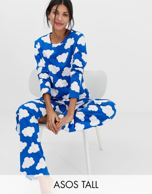 ASOS DESIGN Tall mix & match cloud pyjama long sleeve jersey tshirt & pant