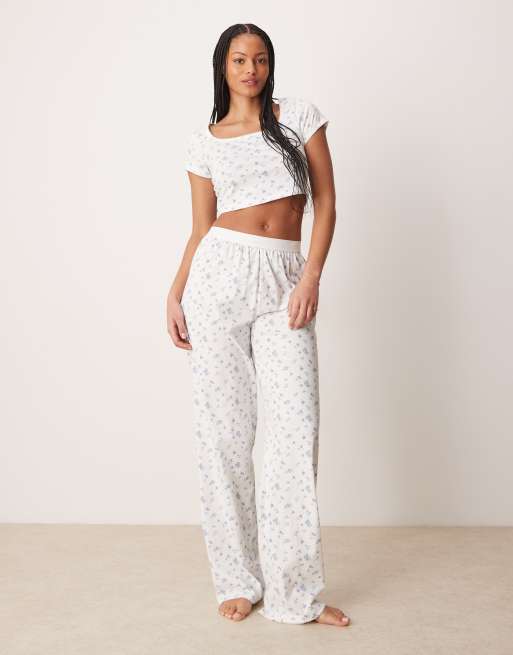 ASOS DESIGN Tall Mix & Match pyjama pants with exposed waistband and picot trim in ditsy print