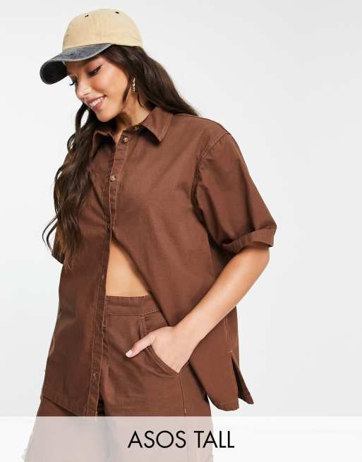 ASOS DESIGN Tall oversized boxy shirt in brown (part of a set)