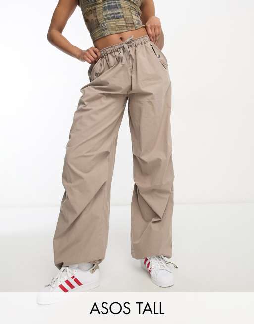 ASOS DESIGN Tall parachute cargo pants in washed sand