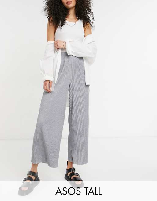 ASOS DESIGN Tall plisse culotte pants in grey marl