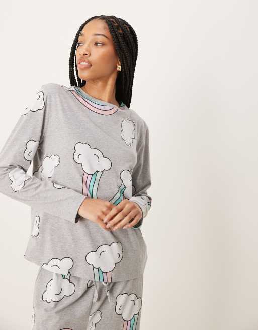 ASOS DESIGN Tall rainbow long sleeve top & pants pyjama set in grey marl