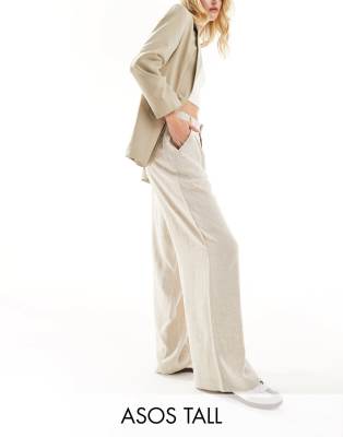 ASOS DESIGN Tall relaxed straight leg pants with linen in natural