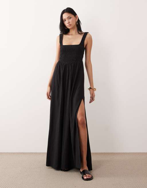 ASOS DESIGN Tall Selina beach shirred maxi dress in black