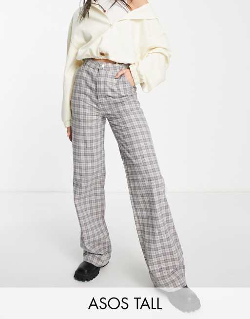 ASOS DESIGN Tall slouchy straight leg pants in grey check