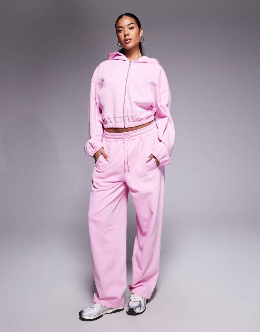 Weekend Collective barrel leg trackies with seam detail in pink (part of a set)