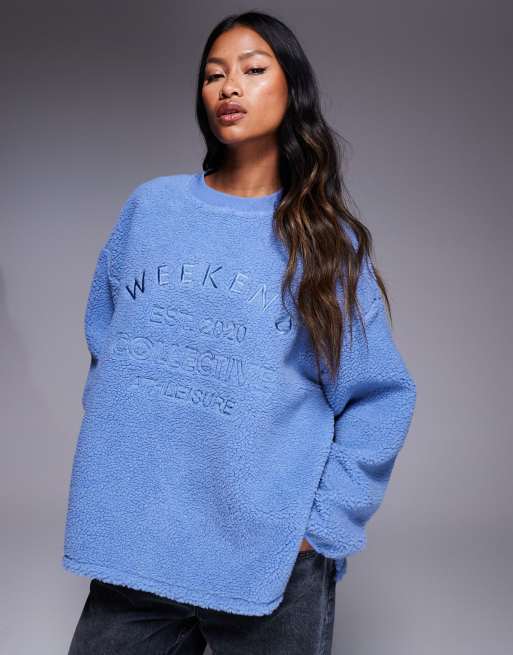 Weekend Collective borg sweatshirt with embroidered graphic in dusky blue