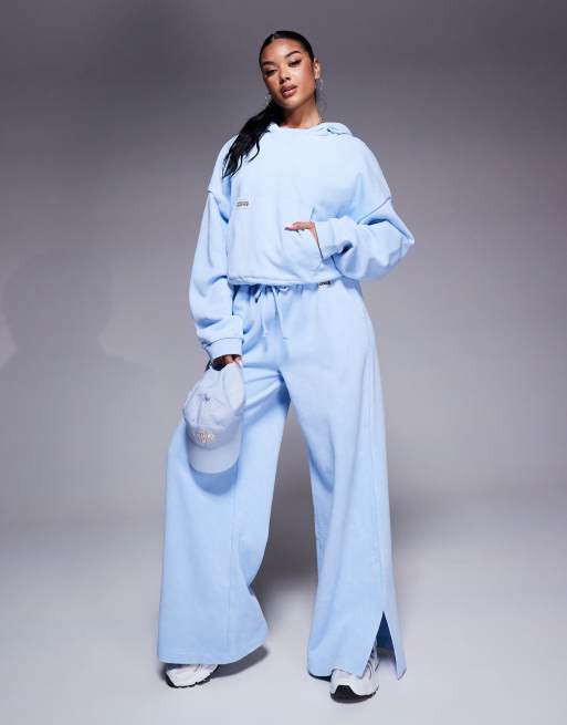 Weekend Collective bubble hem hoodie and trackies set in dusky blue